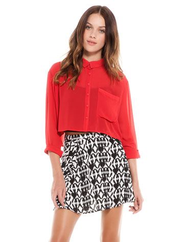 Размышляя, я пришла к выводу, что это будет рубашка. Экономично, актуально, комбинируется легко, при правильном выборе оттенка всегда комплиментарно внешности. Здесь стоит сделать ремарку, если вы не владеете навыками определения своего цветотипа, за покупкой отправляйтесь не накрашенной, с повседневной укладкой, а в магазине выберете несколько разных оттенков. Тот, который не добавит лицу желтизны, не подчеркнет красных прожилок и не сделает взгляд потухшим и измученным и будет ваш. Красный с синим ньюансом, ягодный, "малина", "клюква", "калина" - для девушек с холодным тоном кожи. Для теплого цветотипа - оттенки с желтым подтоном, томатный, "перец", морковный. Арбузный и коралловый - идут практически всем. Насыщенные цвета гармонируют с темной или, наоборот, очень светлой кожей. Если образ нежный, не контрастный, то и цвет должен быть мягким, не агрессивным. Бордово-красный может взрослить, только если вы не обладательница оливковой кожи и темных глаз.